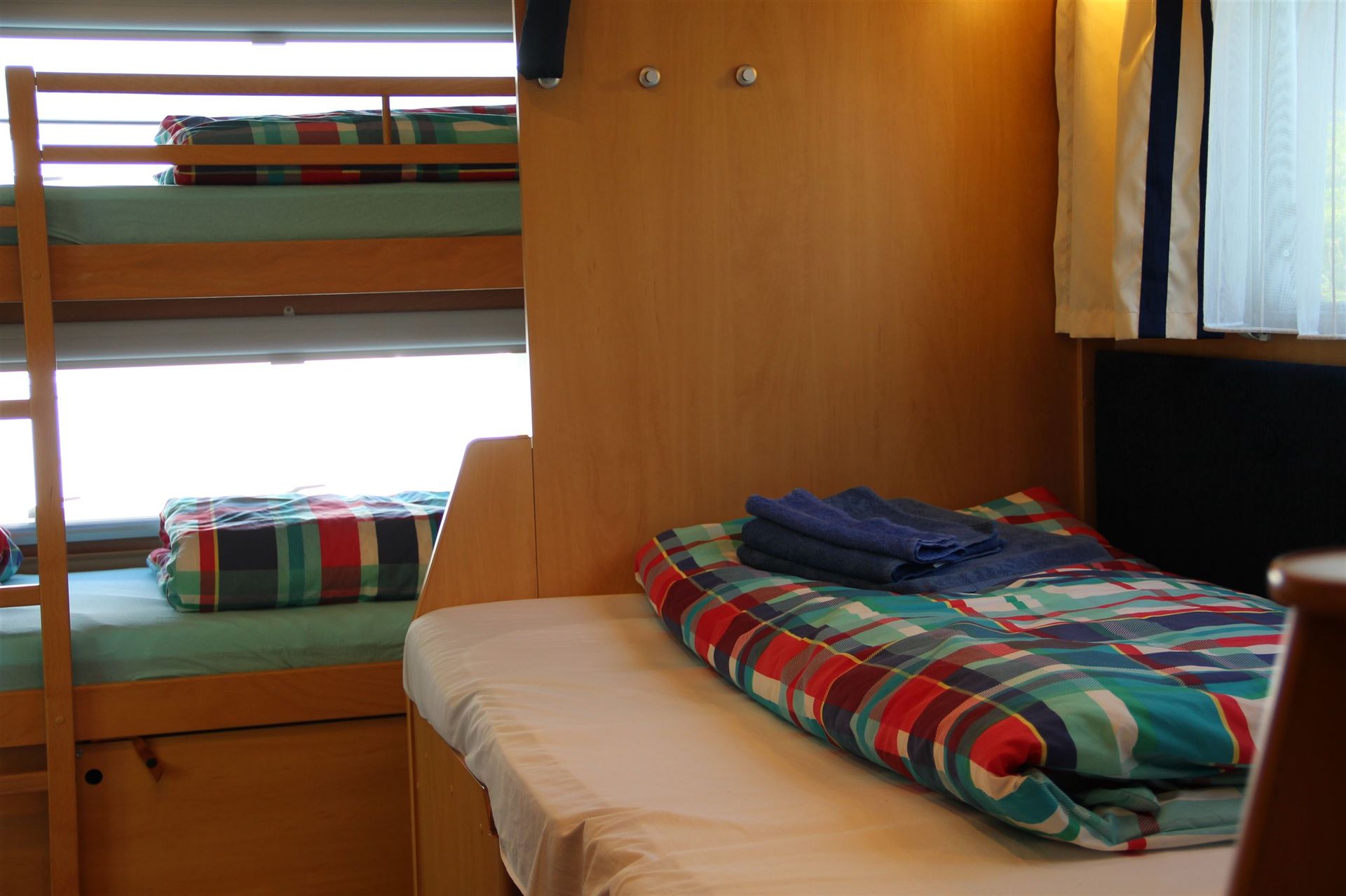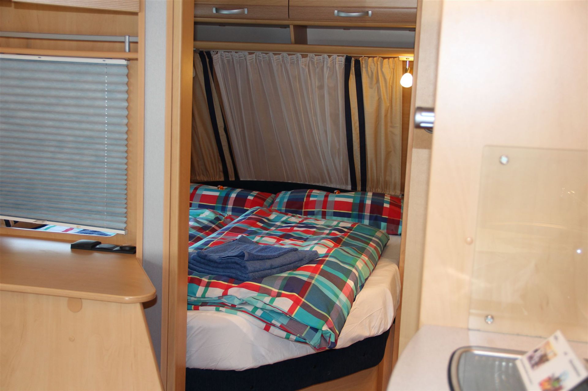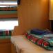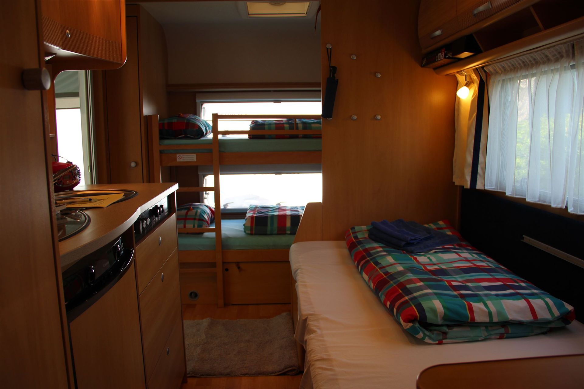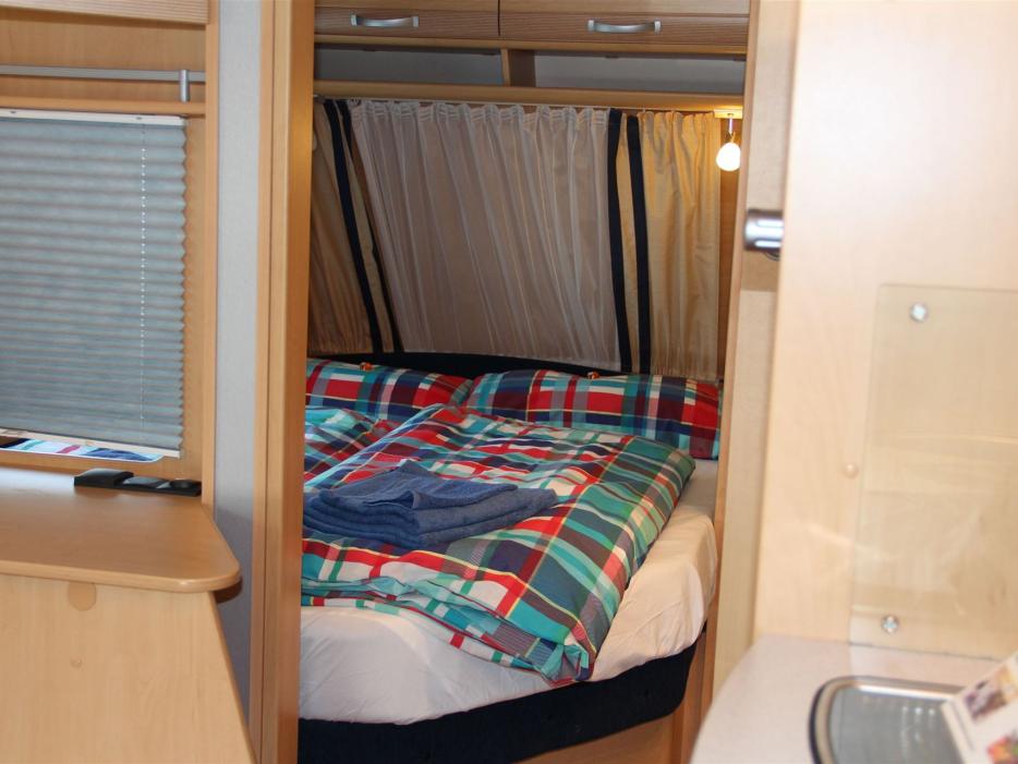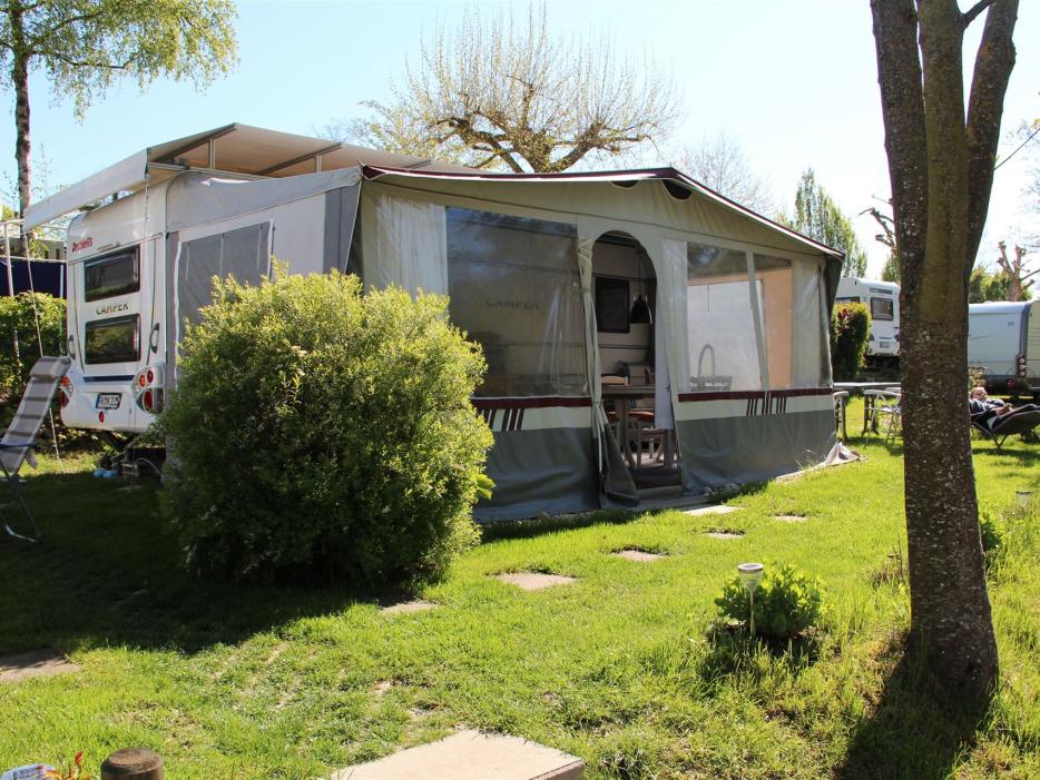 Der Mietwohnwagen "Dethleffs Camper 540SK" auf Platz 109 bietet Platz für 5 Personen ( 2x im Doppelbett, 2x Kinder in Stockbetten 1x auf der umgebauten Sitzecke). Vor dem Wagen befindet sich ein Vorzelt, das genug Platz für Küchenzeile, Abstellmöglichkeiten, Sitzgruppe und Ähnliches bietet.