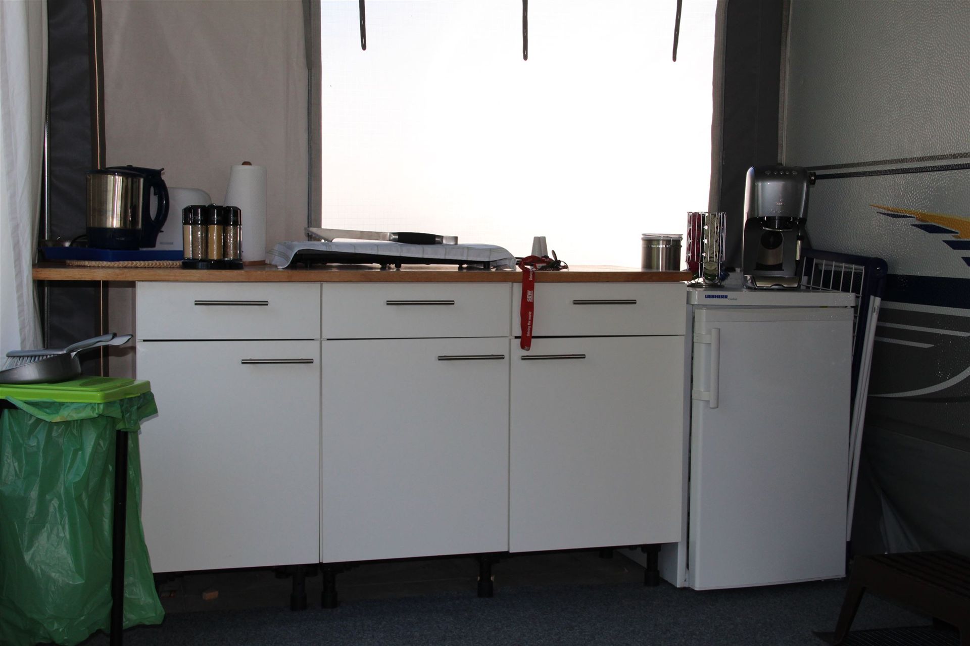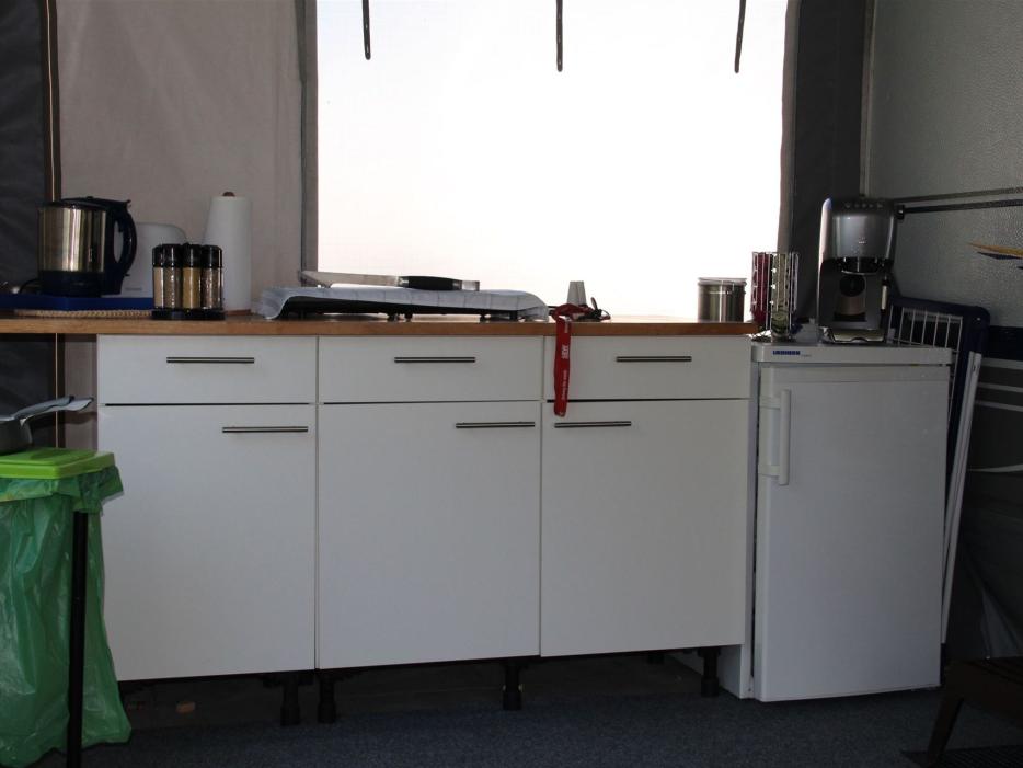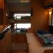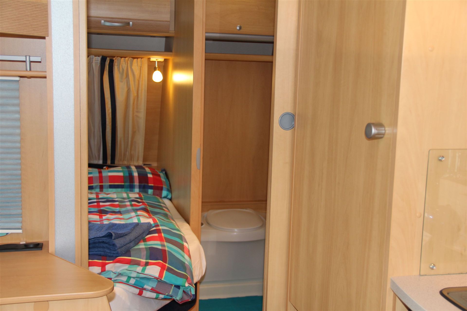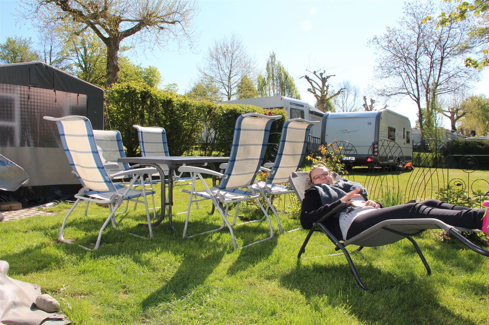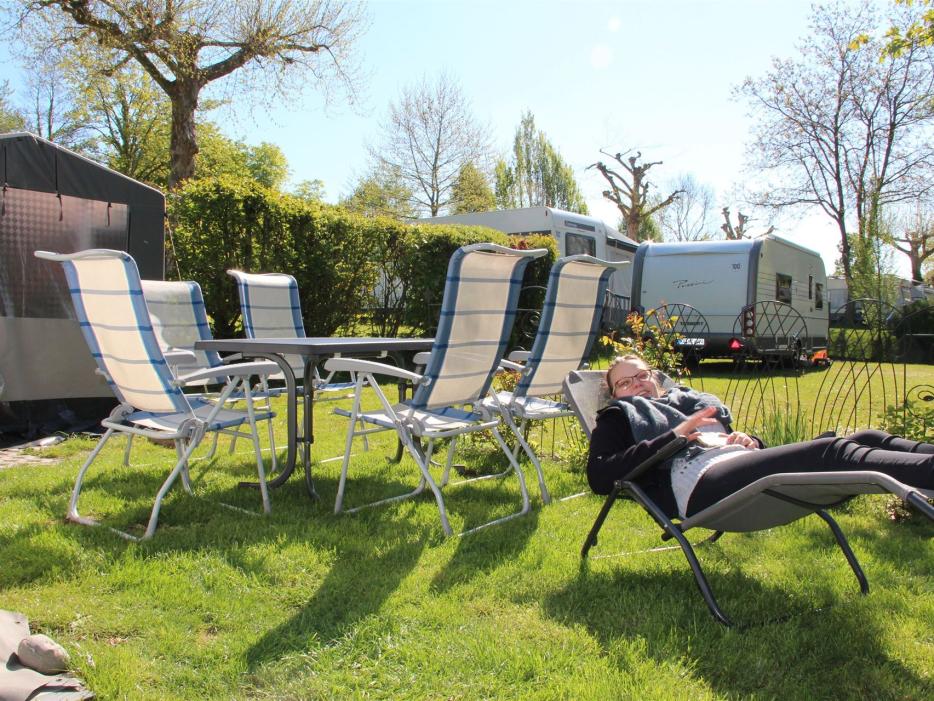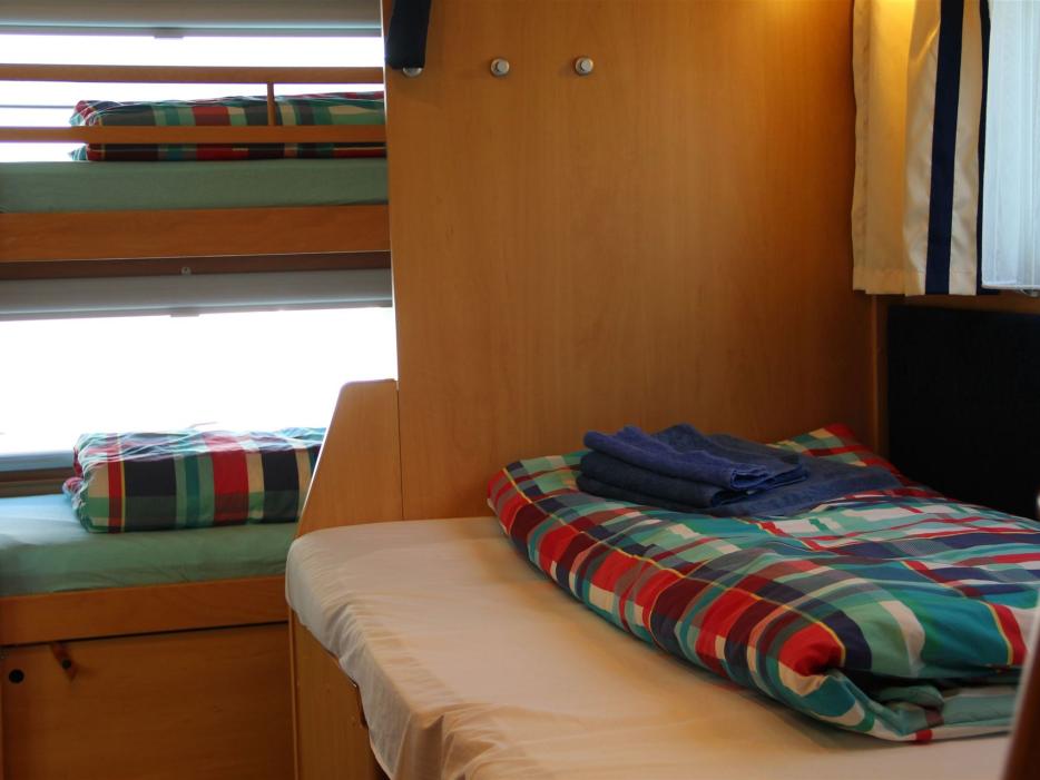 Der Mietwohnwagen "Dethleffs Camper 540SK" auf Platz 109 bietet Platz für 5 Personen ( 2x im Doppelbett, 2x Kinder in Stockbetten 1x auf der umgebauten Sitzecke). Vor dem Wagen befindet sich ein Vorzelt, das genug Platz für Küchenzeile, Abstellmöglichkeiten, Sitzgruppe und Ähnliches bietet.