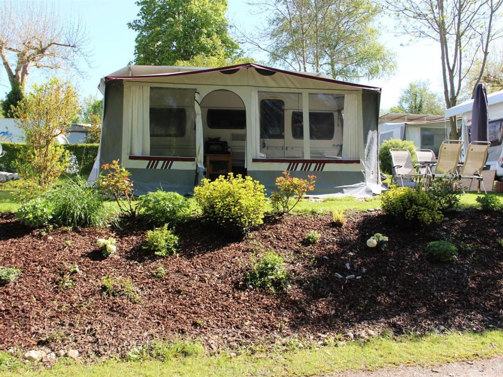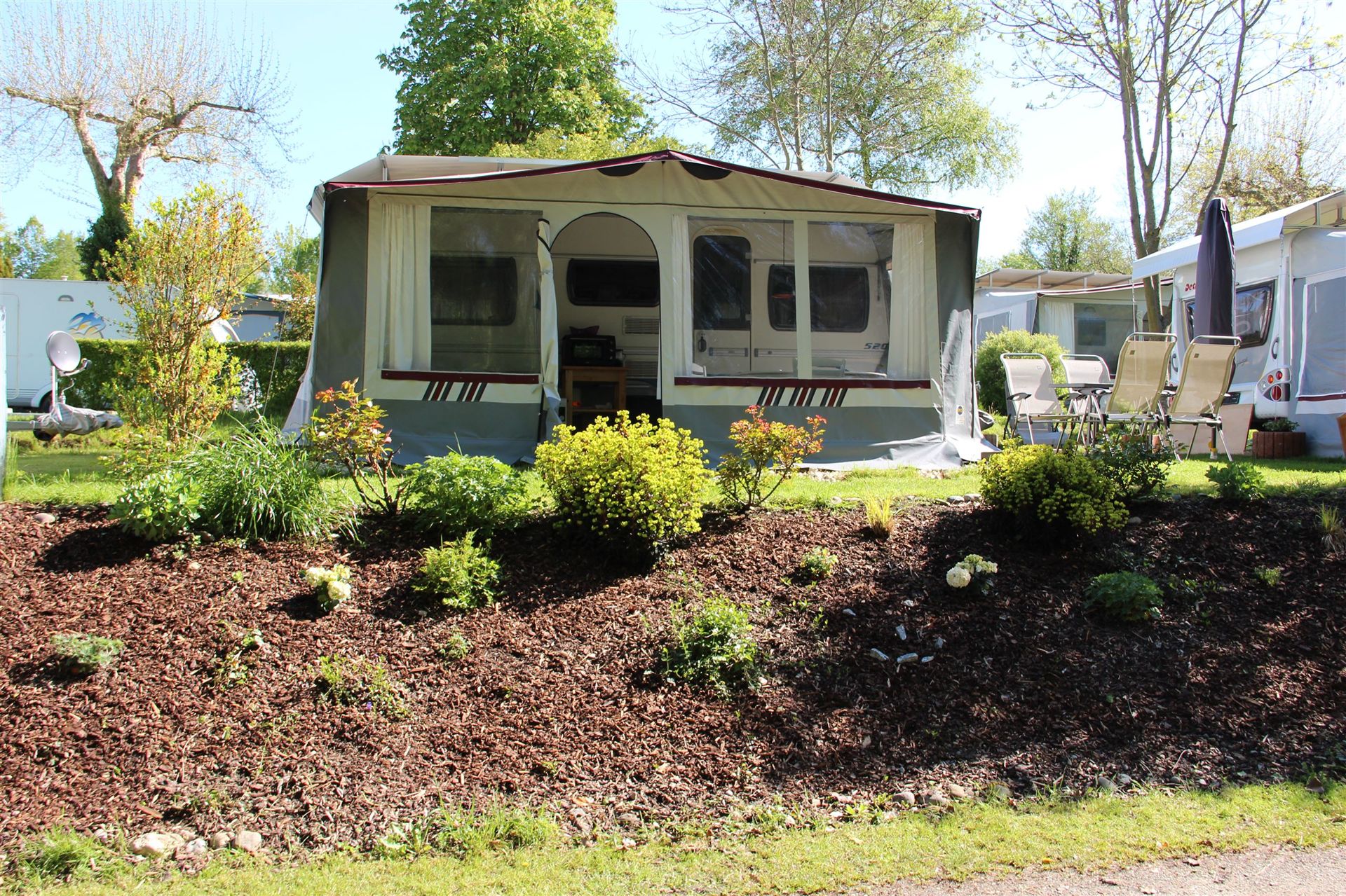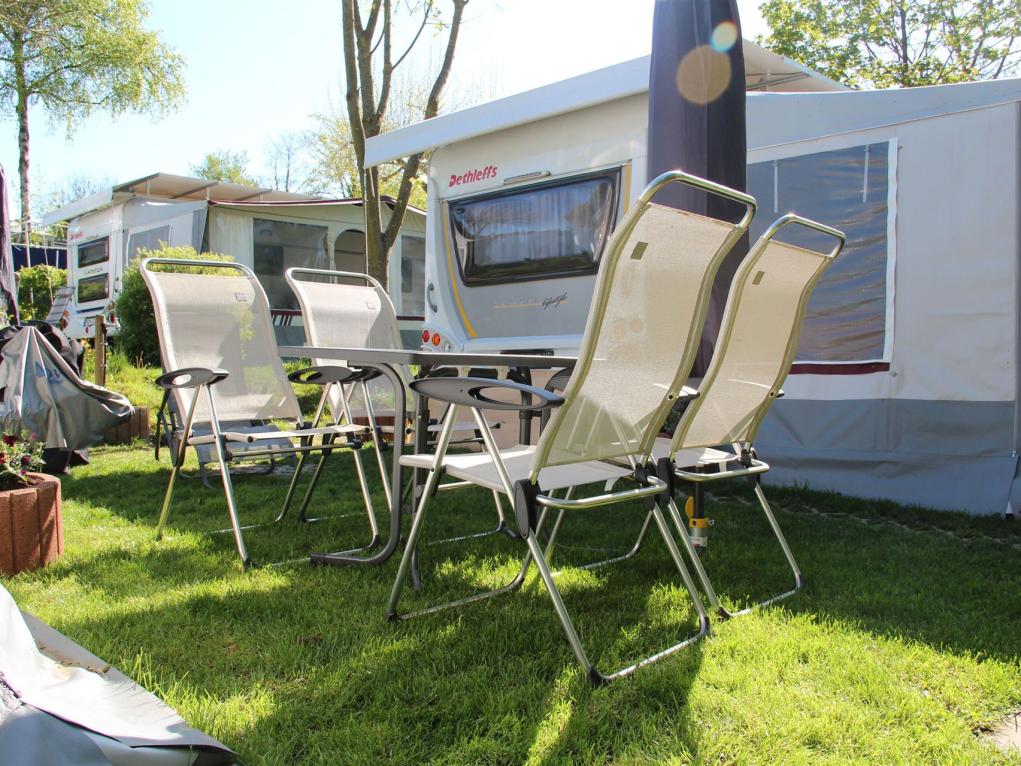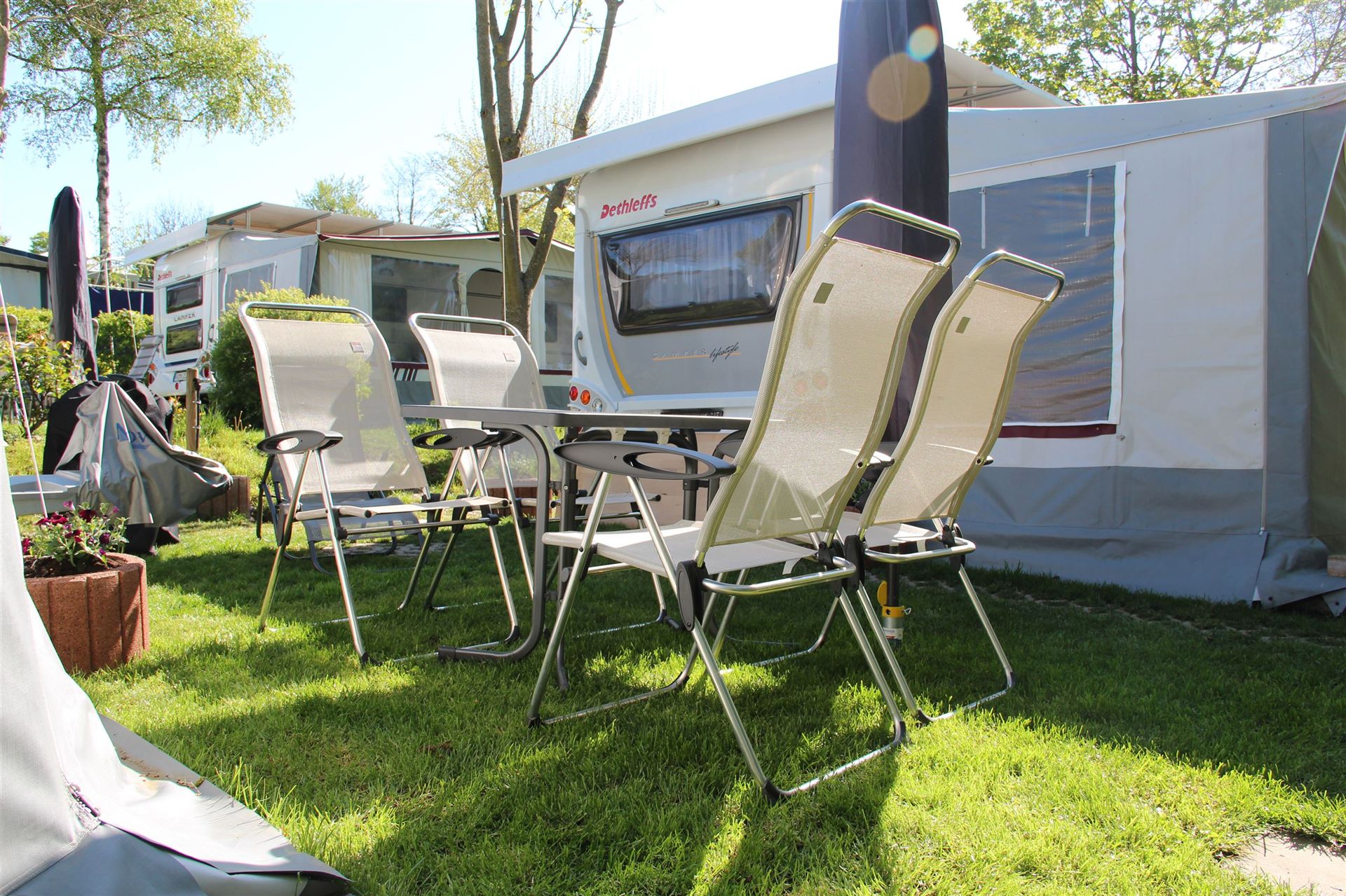 Der Mietwohnwagen "Fendt Topas 520TG" auf Platz 095 bietet Platz für 4 Personen ( 2x Einzelbetten, 2x im Doppelbett). Vor dem Wagen befindet sich ein Vorzelt, das genug Platz für Küchenzeile, Abstellmöglichkeiten, Sitzgruppe und Ähnliches bietet.